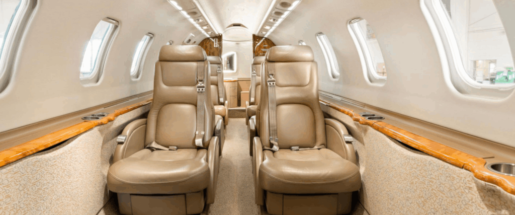 The Learjet 45’s cabin provides a comfortable and spacious environment that feels more like a midsize jet.