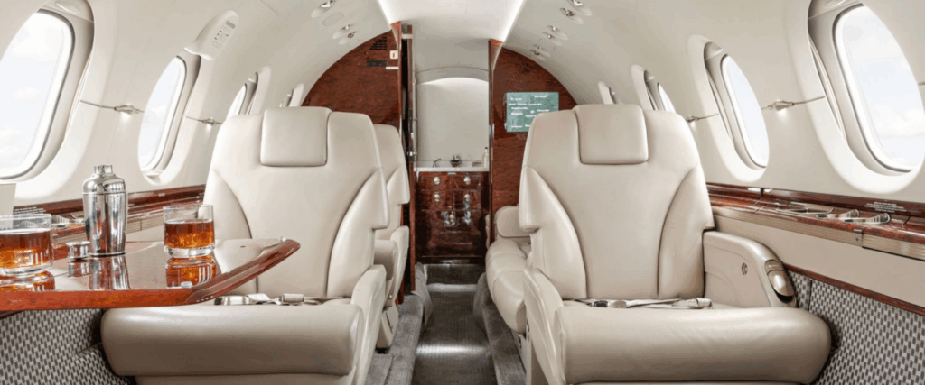 The Learjet 45’s cabin provides a comfortable and spacious environment that feels more like a midsize jet.